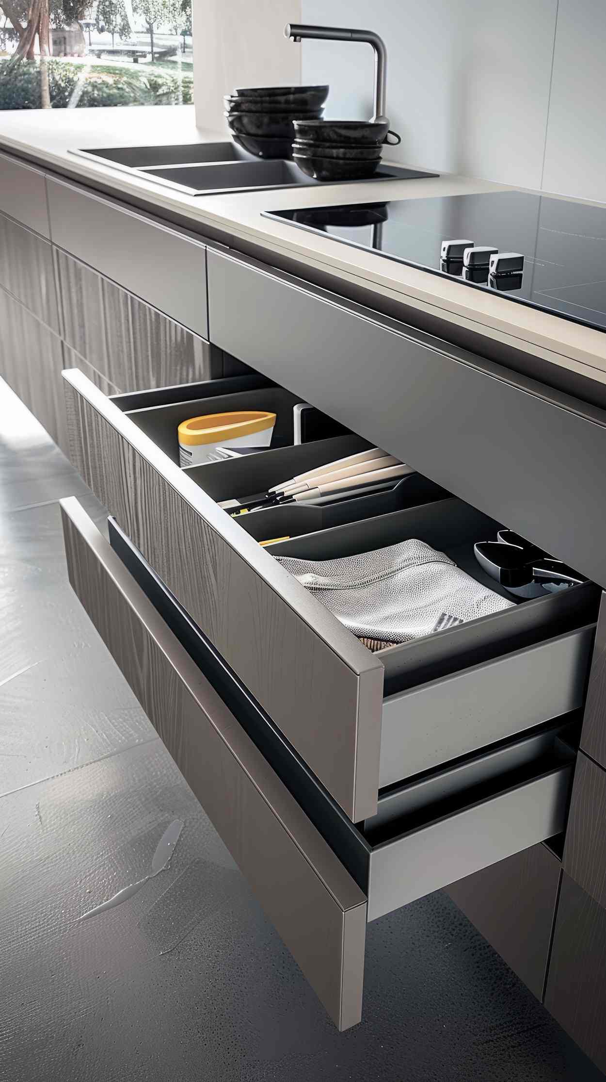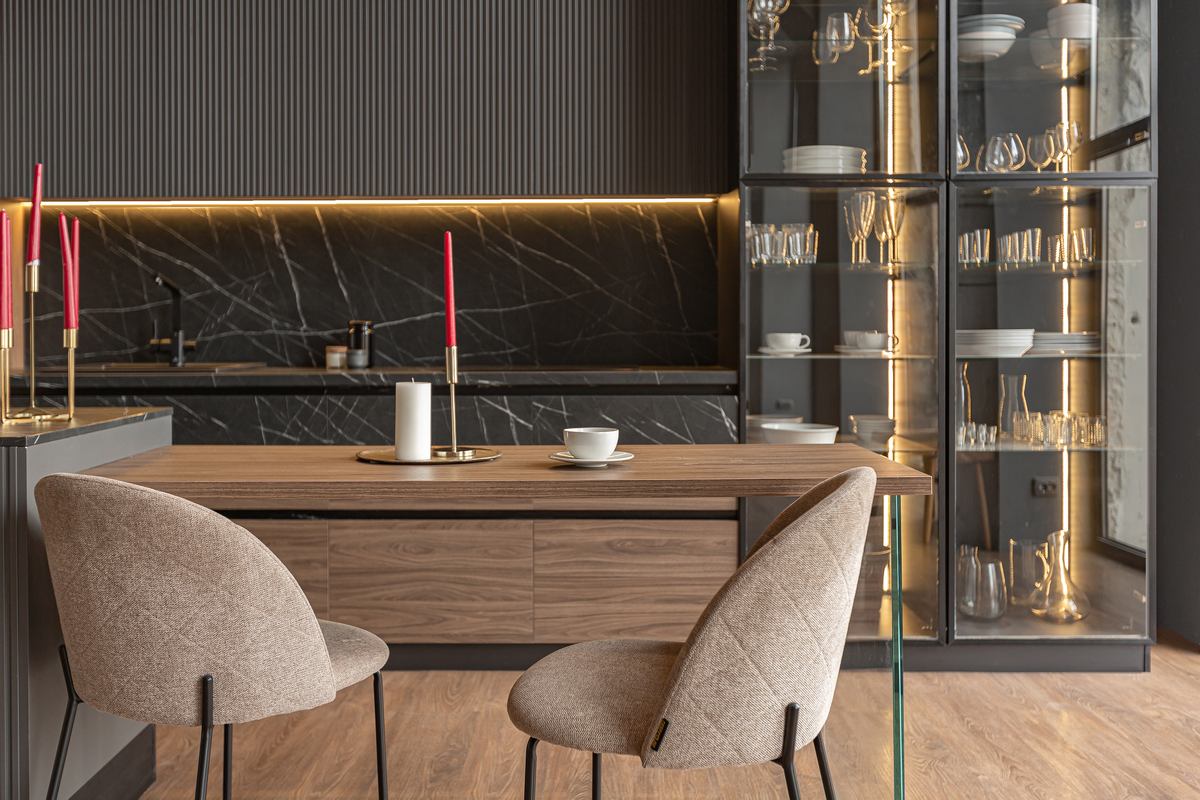 Используем аккуратные металлические акценты для подчёркивания формы и чистоты линий.